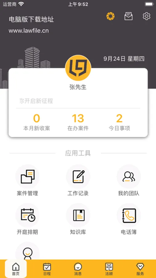 一目了然的移动端首页, 待办事项、日程安排、案件管理的动态,手机移动端首页清晰为您呈现,让您对当下的工作进度一目了然。 随时随地新建工作记录,您可以随时随地在特定案件下书写您的碎片化工作记录,让您有条不紊的记录您的工作。高速便捷的跨平台案件管理,不管任何时间任何地点,掏出手机就可以轻松跟进案件,让您可以高效利用碎片化时间管理案件。