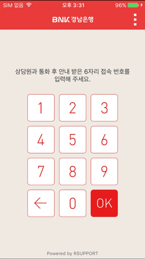 2. 상담원에게 전달받은 접속코드를 입력 후 OK버튼을 누릅니다.