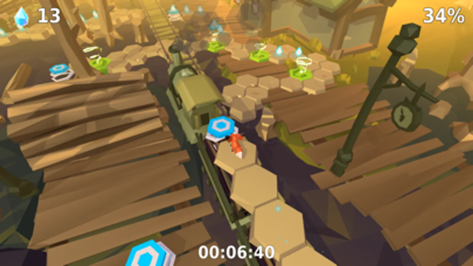 Run through thirteen fairytale planets, passing icy cliffs and volcano craters, finding your way through a bog and a dark cave.