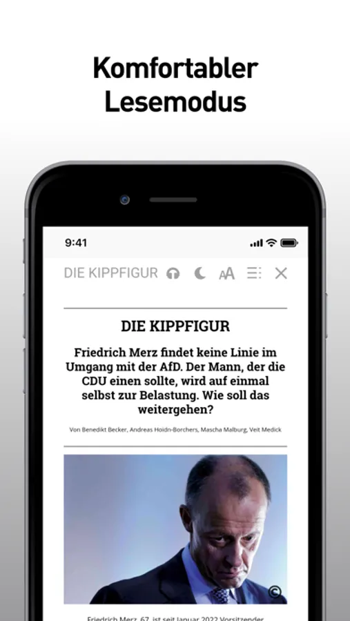 • Komfortable Textlesemodus-Darstellung aller Artikel für Tablet und Smartphone