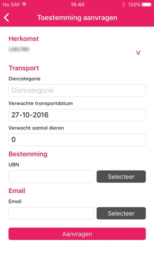 Voor transporten tussen varkensbedrijven onderling, dus niet naar de slachterij, export/import of hobbybedrijven is een toestemming nodig. Deze moet aangevraagd worden voordat het transport plaatsvindt. Export/Import en doodmelding kunnen niet in de App geregistreerd worden, dat gaat via de website mijn.pov.nl