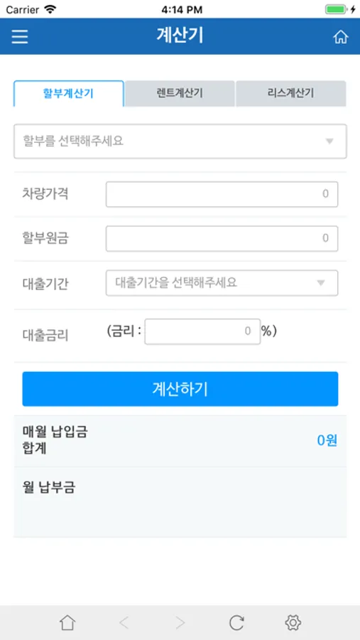 할부계산기 : 원리금균등분할을 기준으로 계산되는 할부금계산기를 제공합니다.
