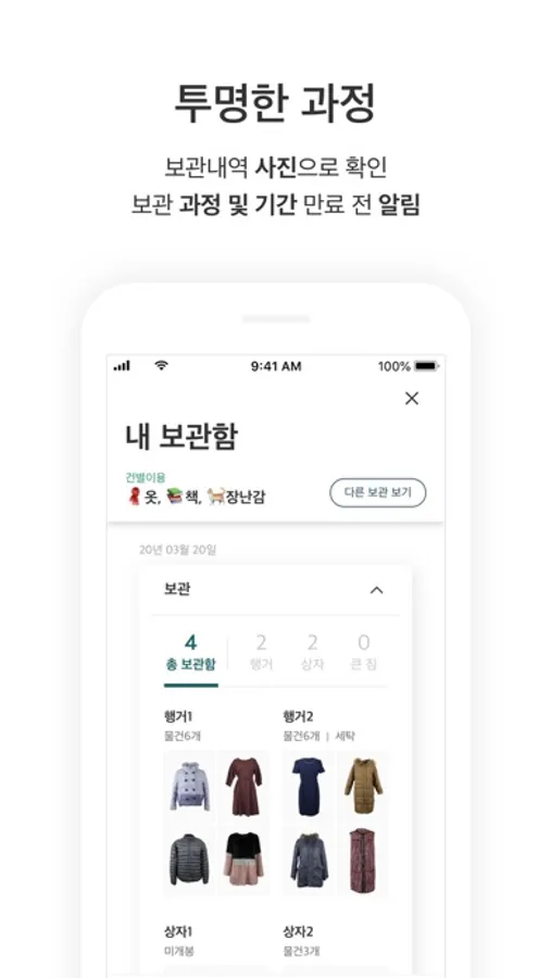 - 세탁부터 보관까지 한 번에 해결되는 보관 전/후 세탁 서비스