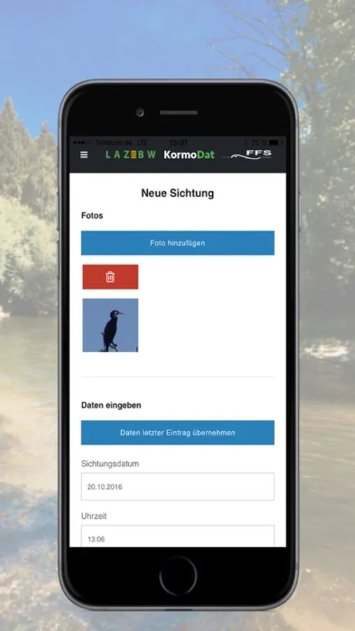 Mit der App KormoDat ist es möglich, Kormoranbeobachtungen mit mobilen Geräten, wie Smartphone oder Tablet, direkt am Gewässer zu erfassen und zu melden. Die Daten gehen nach einer Kontrolle in die Kormorandatenbank Baden-Württemberg (KormoDat) ein. Mit der zentralen Erfassung der Kormorane in B.-W. soll der Kenntnisstand über den aktuellen Bestand und dessen Entwicklung verbessert werden.