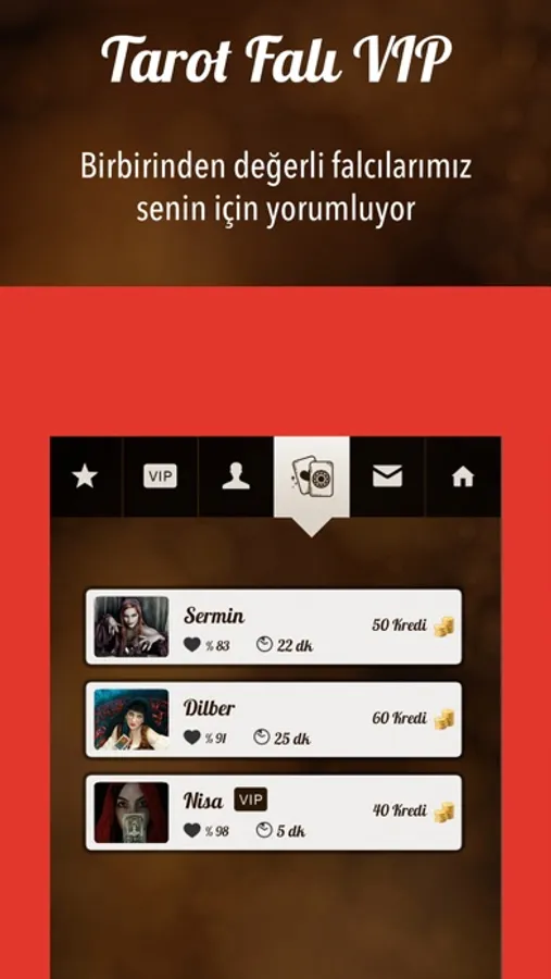 VIP üyelerimize özel fallar öncelikli bakılıyor ve 5 - 10 dakika içinde seçmiş olduğu kartlar yorumlanıyor.