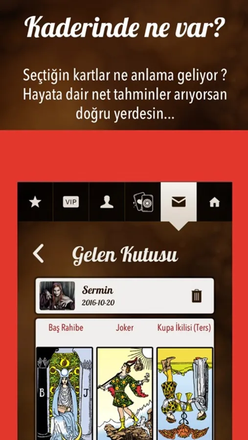 * Yorumlanmış tarot fallarınız gelen kutusunda saklanır.