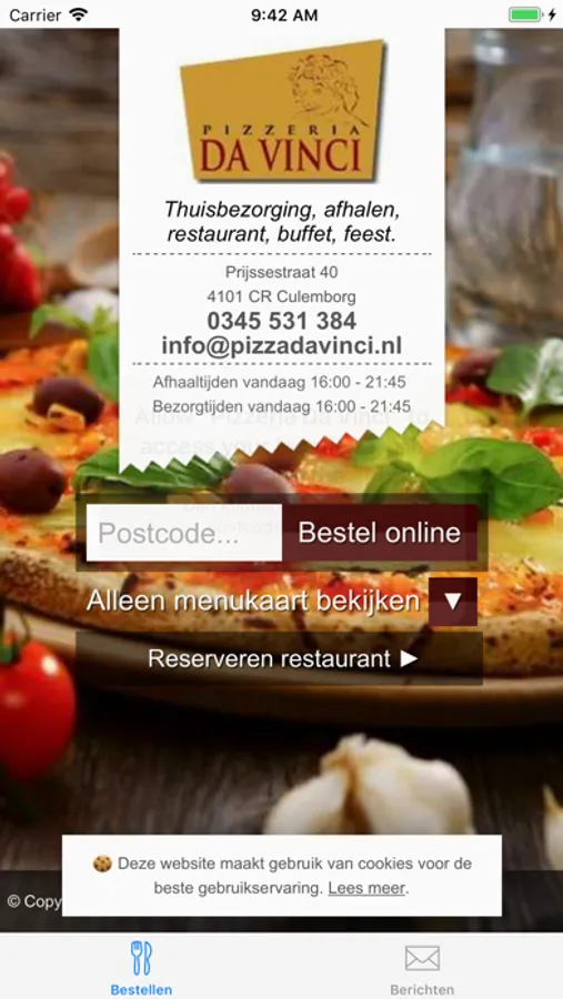 Met de Pizzeria Da Vinci app bestel je veilig en snel de lekkerste pizza, pasta, vlees gerechten en meer van Culemborg en omstreken. Direct online betalen via je eigen bank met iDEAL!