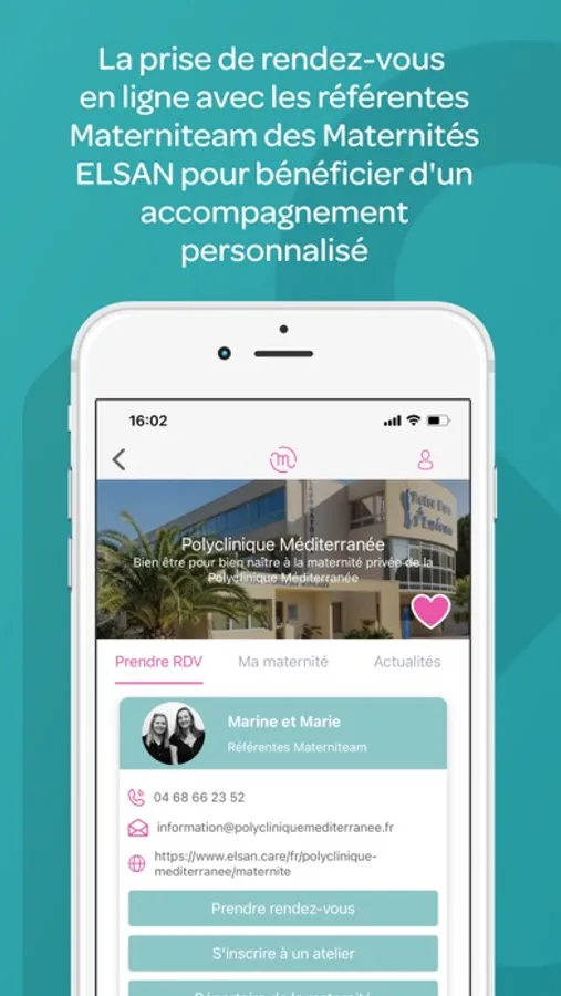 > La prise de rendez-vous en ligne avec les référentes Materniteam des Maternités ELSAN pour bénéficier d'un accompagnement personnalisé non médical avec nos référentes Materniteam
