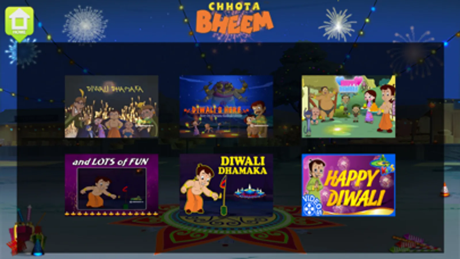 Burst firecrackers along with Bheem, Chutki, Raju and Kalia and watch Diwali videos of Chhota Bheem.