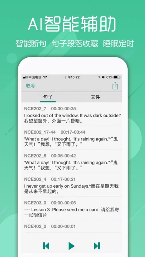 In order to understand each sentence, ddrepeater provides some convenient operation modes. For example, when you long click a sentence, ddrepeater will automatically repeat this sentence.