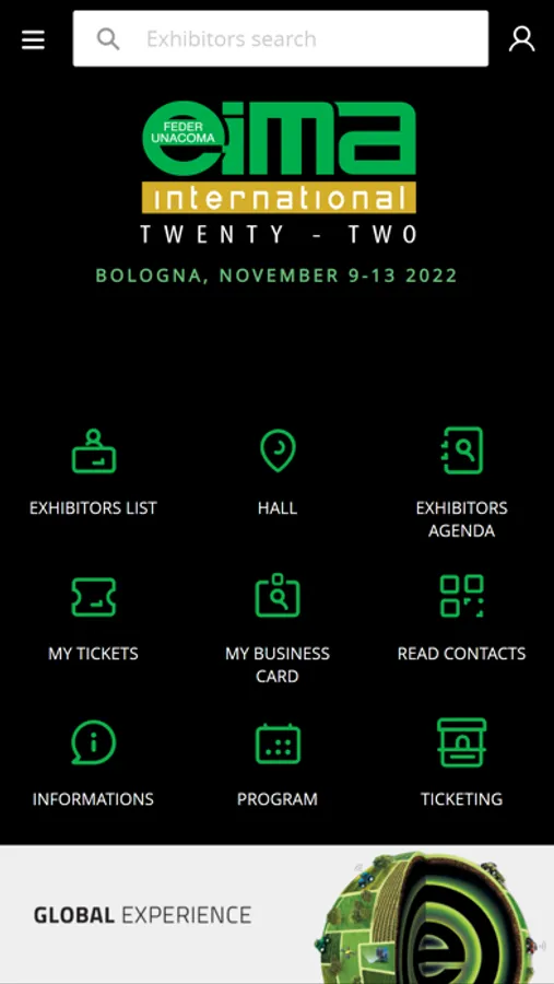 The Official EIMA International 2022 App makes it possible to organize visits to the International Exposition of Machinery for Agriculture and Gardening held in Bologna from 9 to 13 November 2022 by providing the following functions: