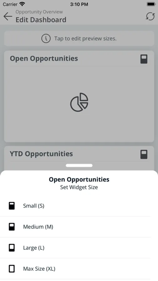 Within Edit mode, admins can reorder or hide/show widgets from the web on mobile app dashboards and detail page tabs.