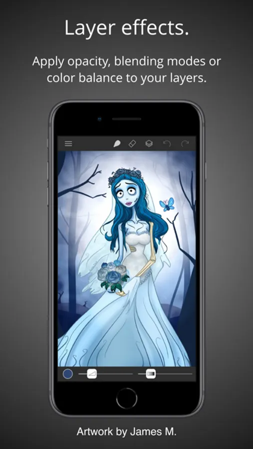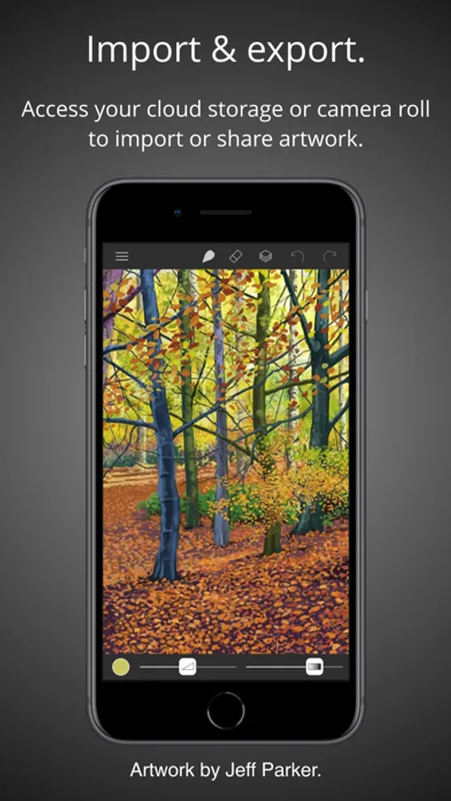 - Export your paintings for sharing or importing into other apps as PNG and JPEG to all cloud storage services or as photos directly to your camera roll.