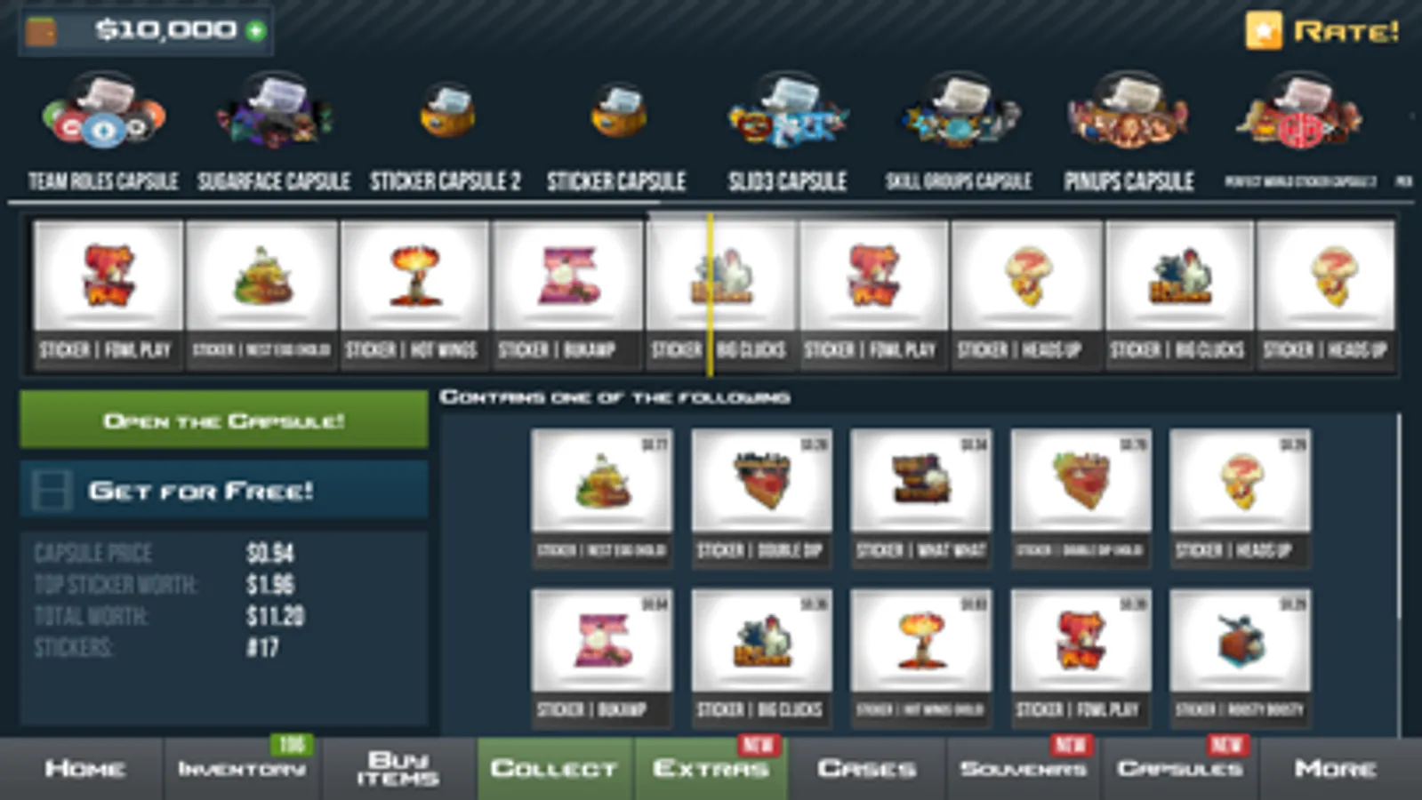 Buy and Open CASES, CAPSULES, SOUVENIR PACKAGES to draw various items and collect them!