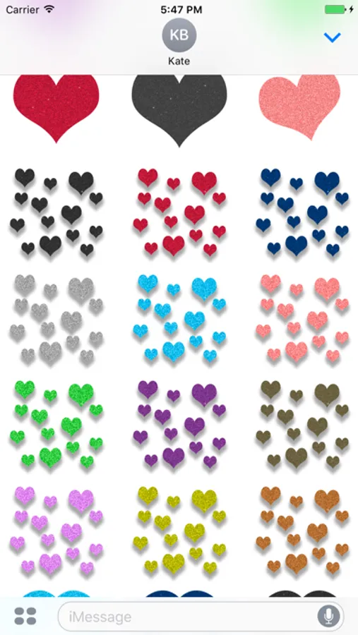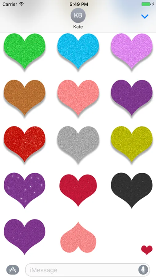 Add some sparkle to iMessages with a rainbow of glitter heart stickers. The best sticker are always shiny and full of sparkle.