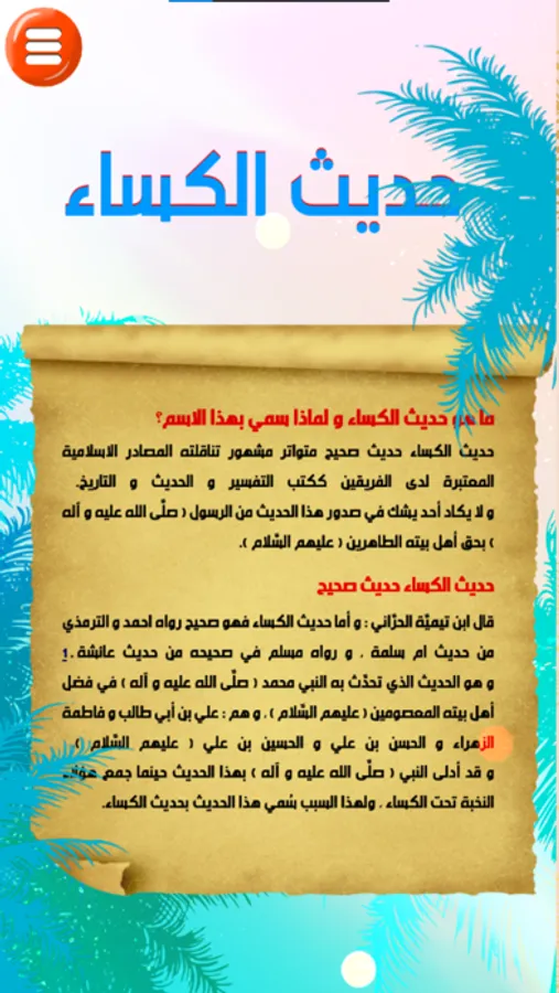 حديث الكساء حديث صحيح متواتر مشهور تناقلته المصادر الاسلامية المعتبرة لدى الفريقين ككتب التفسير و الحديث و التاريخ .