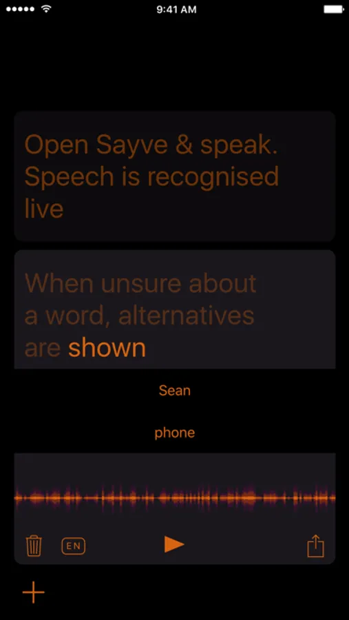 2. Audio recording is saved in case speech recognition messes up. You can re-listen.