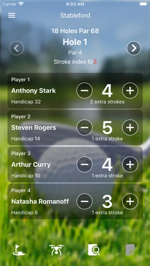• In app Scorecards (up to 4 players!) to calculate Stroke, Stableford and Match Play