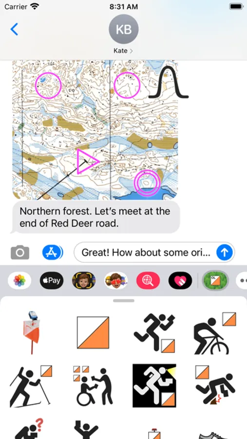 Enjoy this essential set of orienteering stickers when chatting to your friends in iMessage. Express yourself with the images of your favorite sport, orienteering, when you talk to your club mates, race officials or fellow competitors.