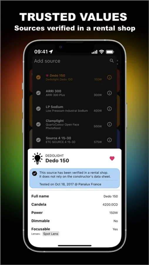 All results have been experimentally verified with a light meter in rental shops. Predilux does not rely on constructor’s data.