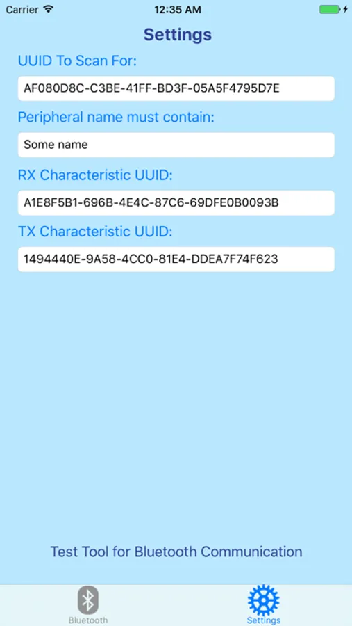 On the settings page one can change the UUID values. The app will remember them but only store them on your device (locally).