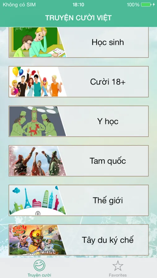Ứng dụng truyện cười tập hợp từ hơn 4,000 những câu chuyện hay, hài hước ở đủ các thể loại và luôn được cập nhật thường xuyên.