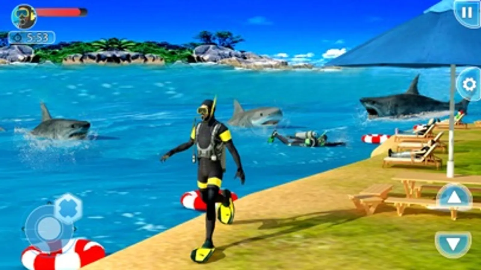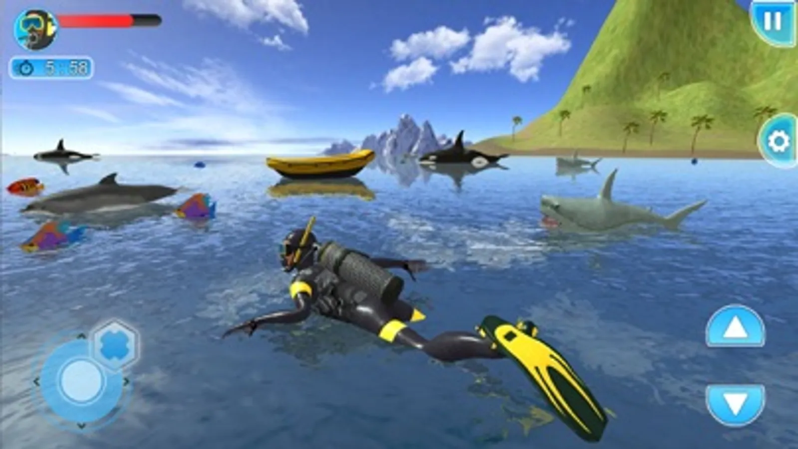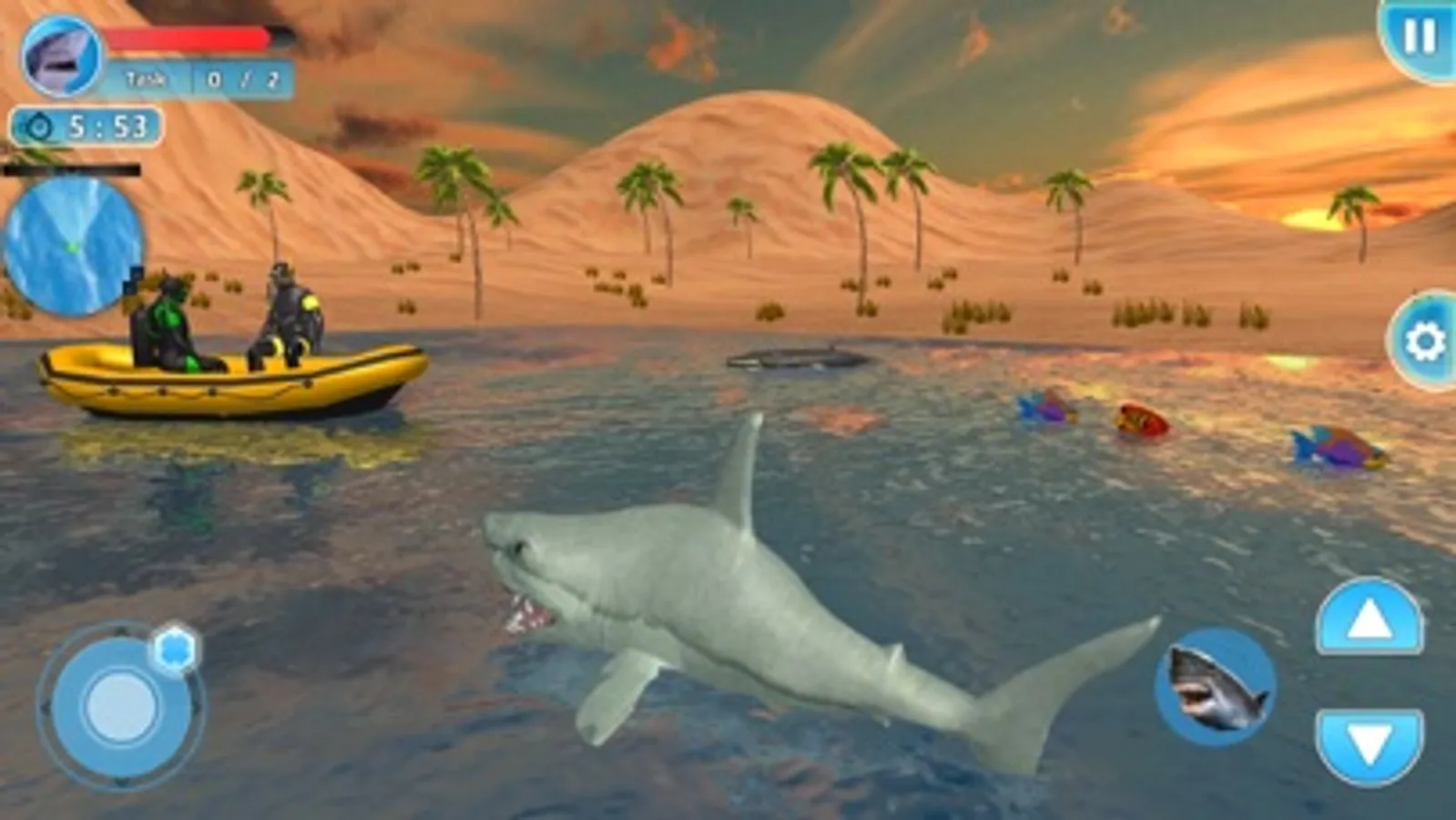 Take also control of shark that is chasing scuba divers. Spear hunters will shoot at you so attack them and escape.
