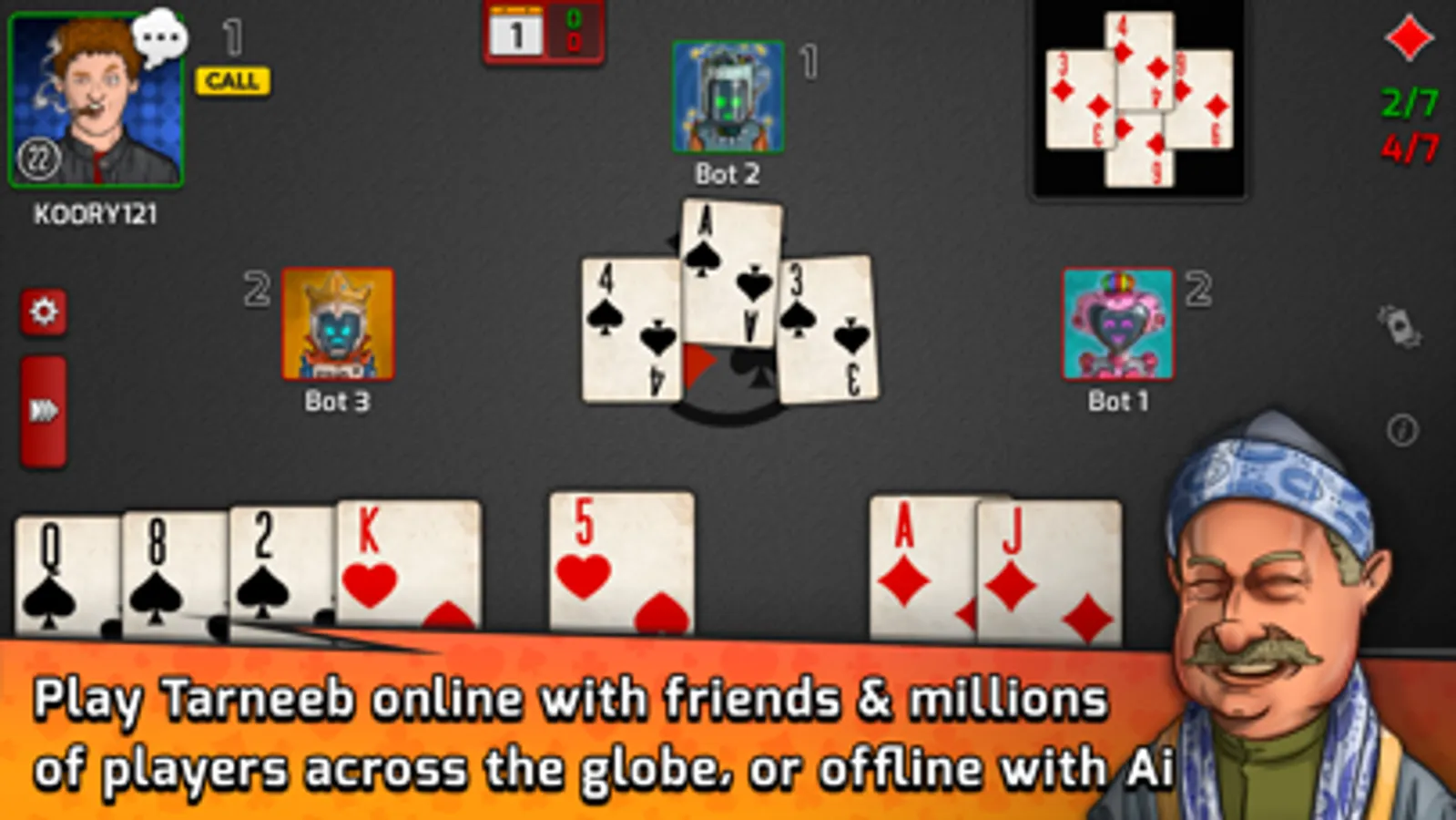 -A very easy and helpful in-game tutorial for Tarneeb newcomers
