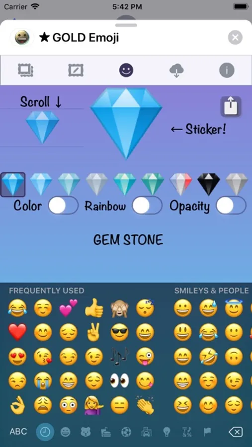 - Create stickers from the standard emoji keyboard. All emojis are available!