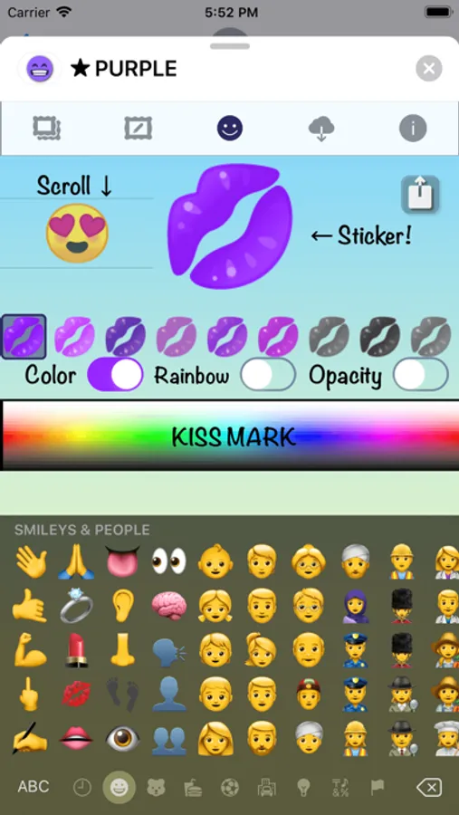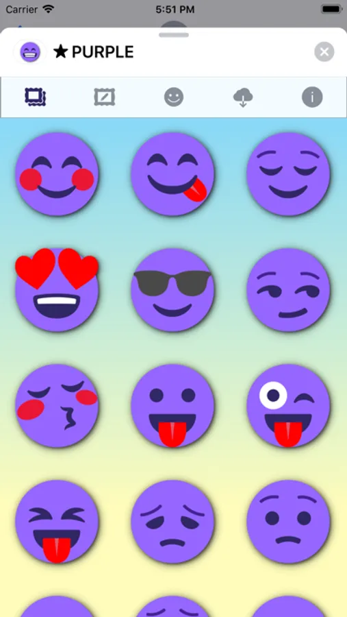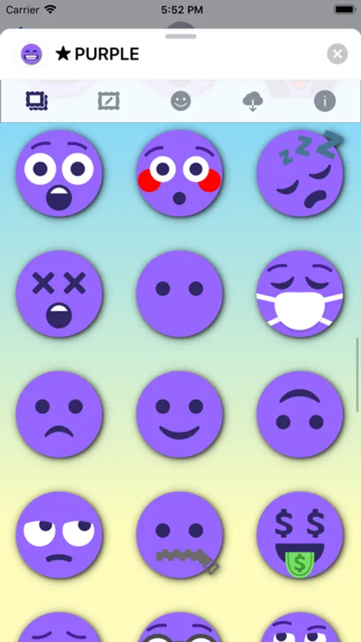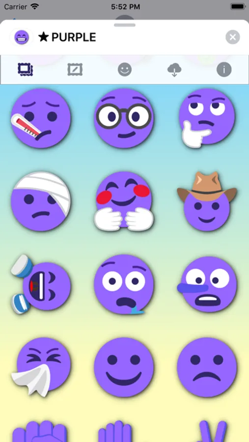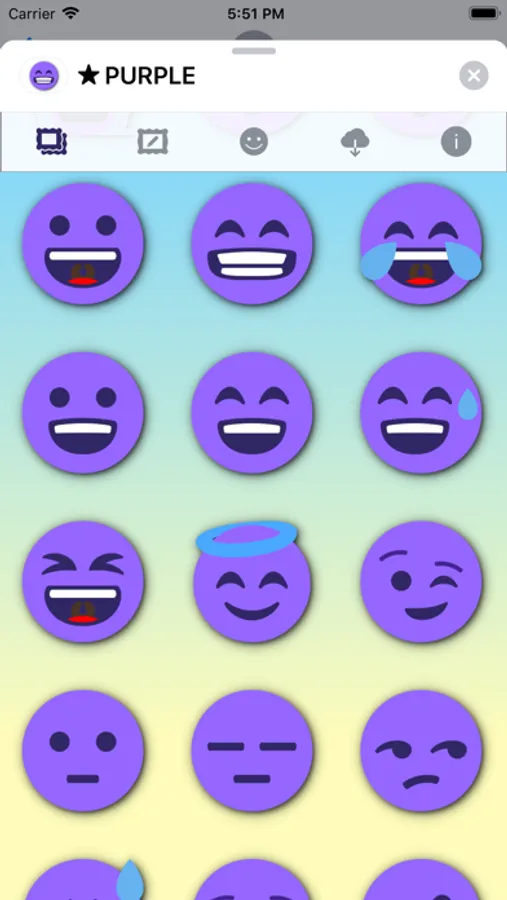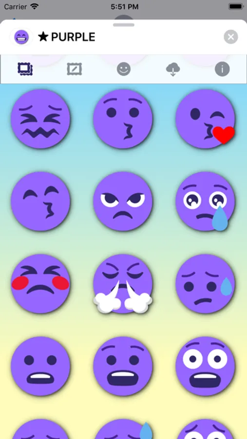 99 purple emoticons stickers for iMessage.