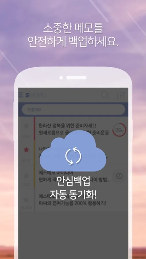 - 에스메모 설치 후 로그인하시면 앱 에서 작성한 메모들이 동기화됩니다.