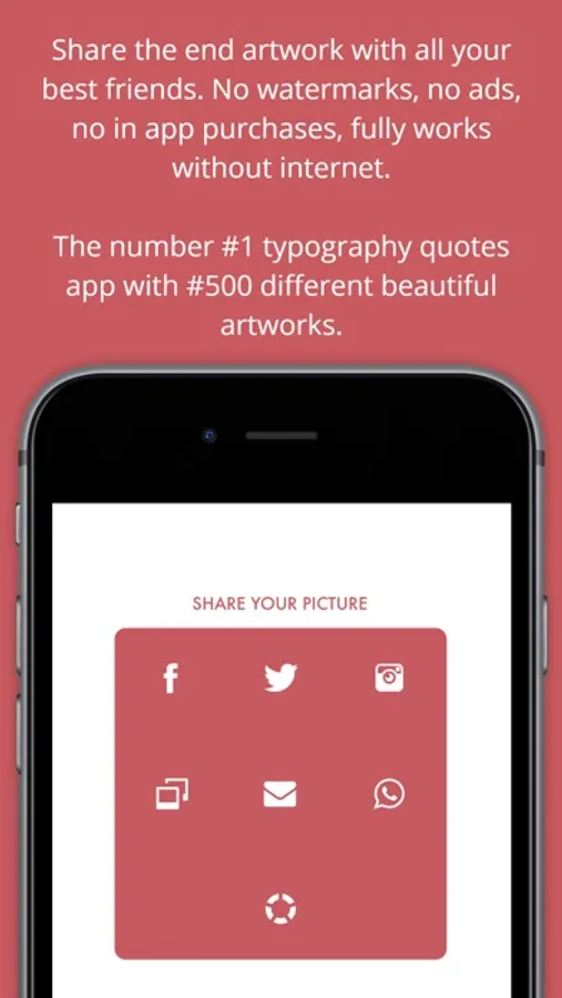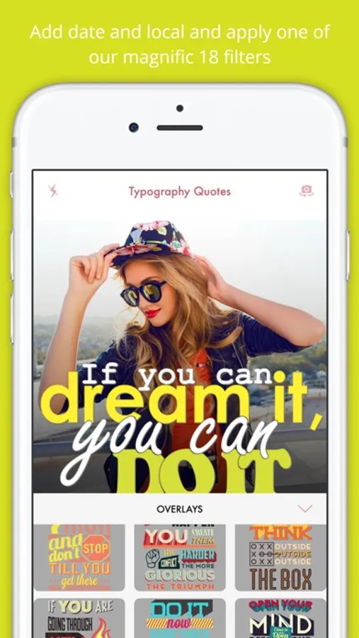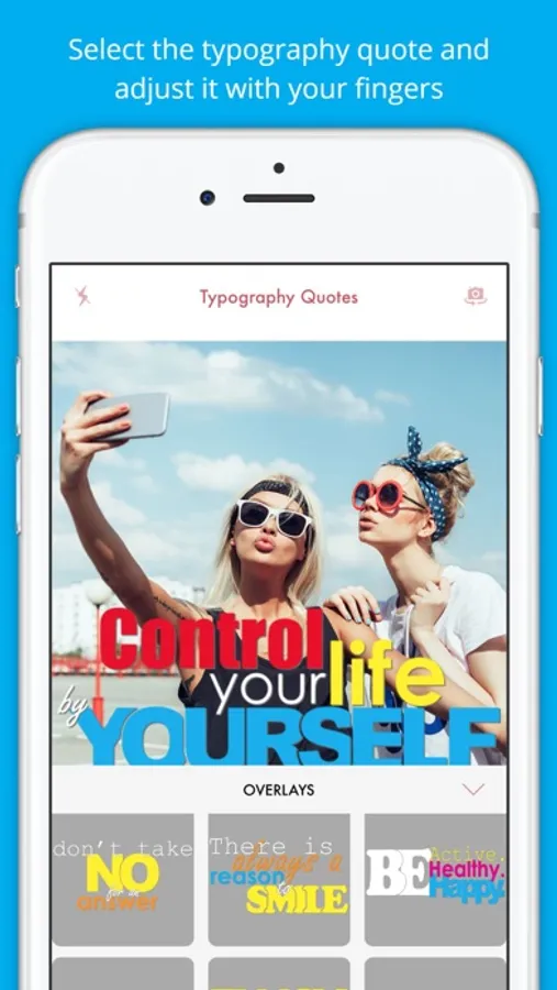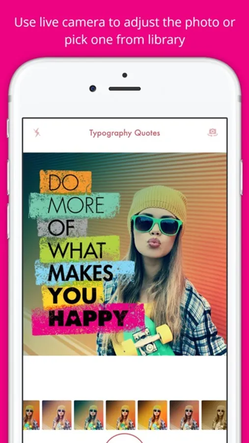 Pick a photo, apply a filter, select your quote, adjust it using two fingers and share it. Yes, it is that easy and powerful.