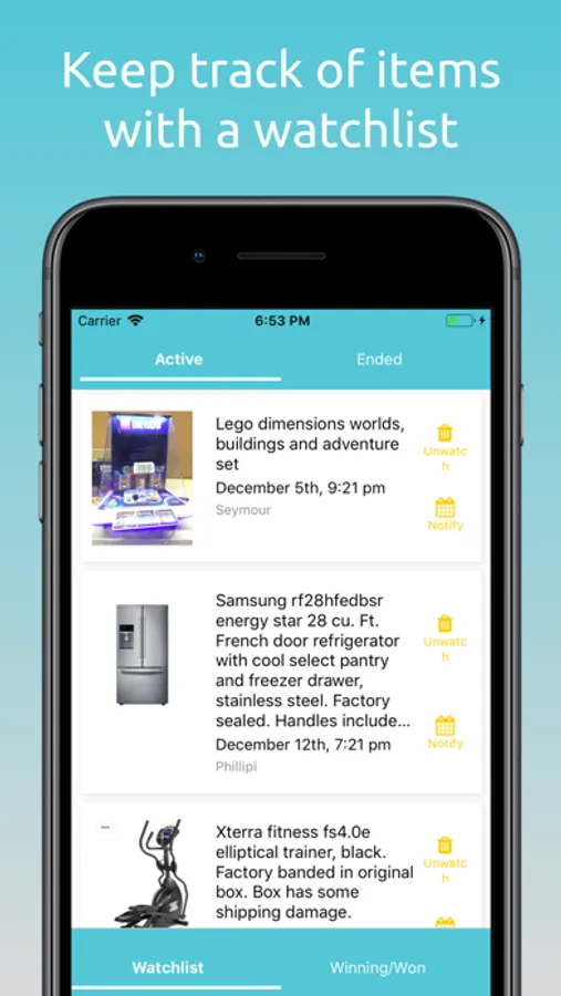 • Save items to the App Watchlist, and use the app watchlist to keep track of item's you're interested in.
