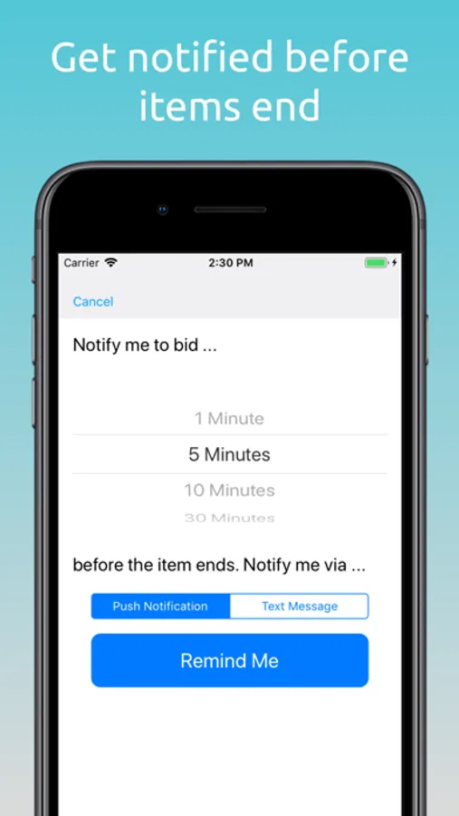 • Get SMS notifications or Push Notifications when an Item you are interested in is about to end.