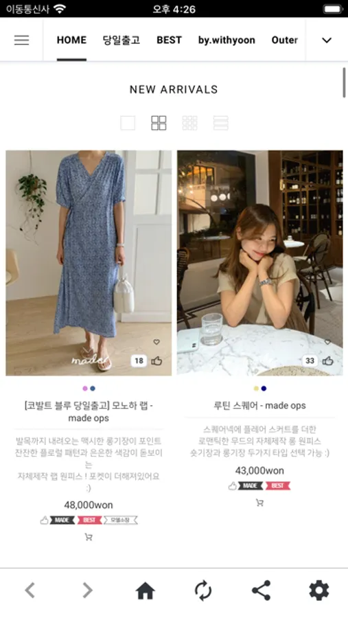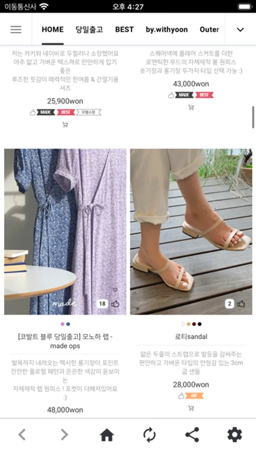 본 APP은 웹사이트 쇼핑몰과 100% 연동되어 있어