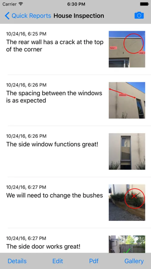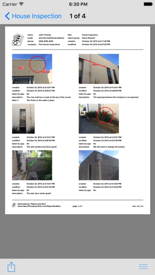 Generate and export custom PDF reports of photos with textual and graphical annotations all on your phone