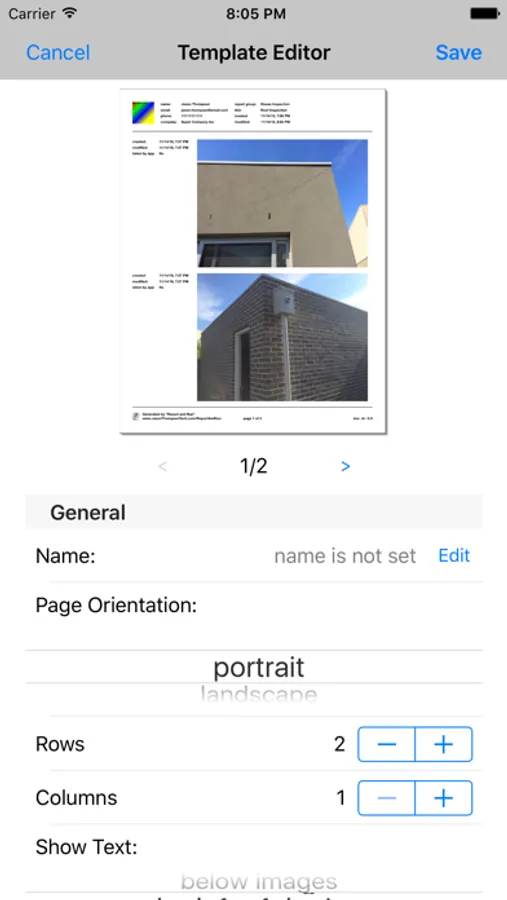 6. Customise the reports: landscape or portrait, number of rows and columns etc...