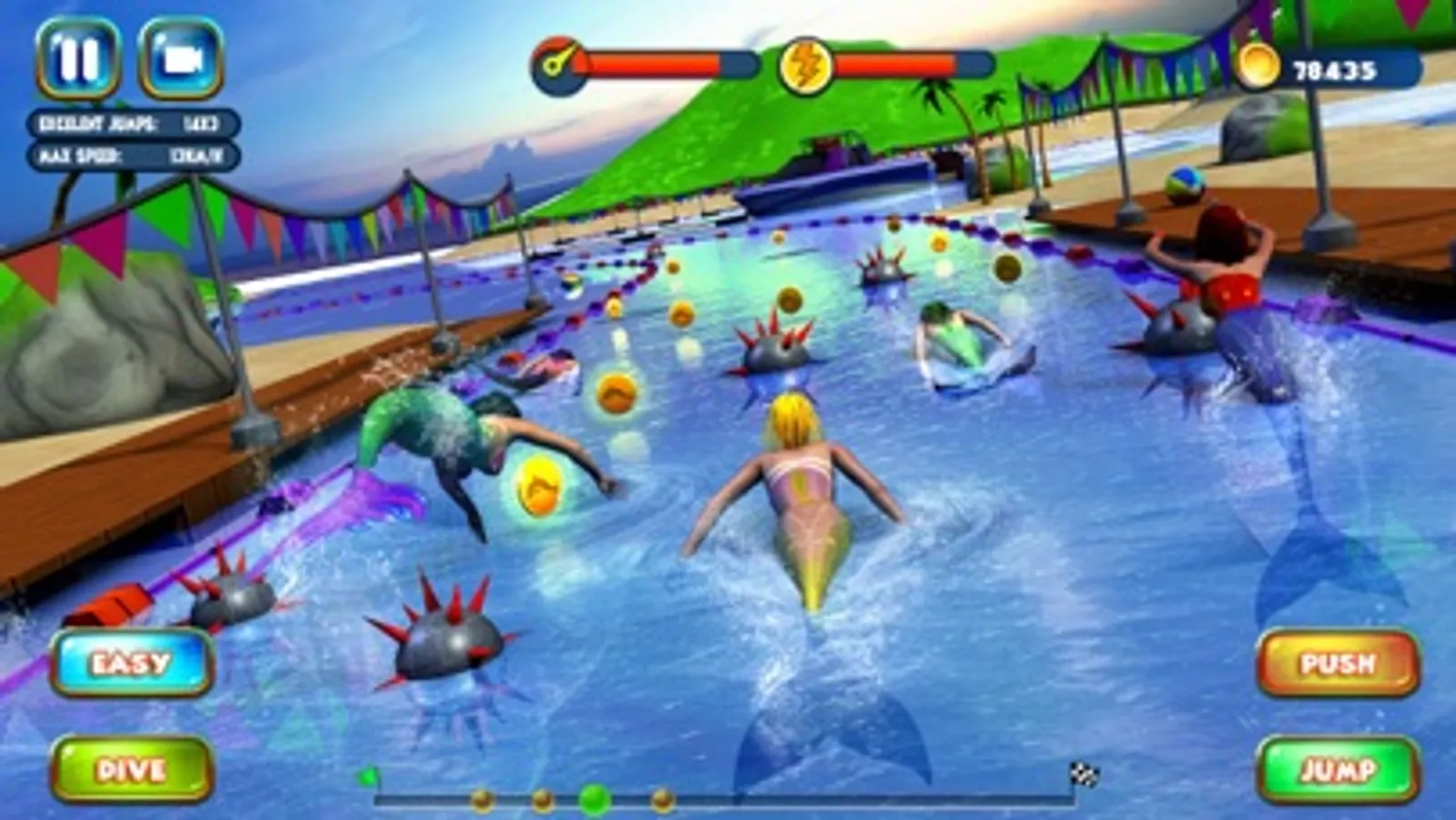 In this fantastical game, myth becomes reality! In Mermaid Race 2016, the world’s most beautiful sea creatures are ready to hit the water. Tapinator presents a brand new hybrid adventure combining wipe-out style water racing and swimming mania! Be warned, these mermaids are no princesses! Make a splash! Leap over fun hurdles like spiked buoys and floating hoops. Bop beach balls out of your way! Enjoy beautiful environments packed with amazing obstacles such as crushing machines, and electric currents. Avoid dangerous hurdles and glide your way towards the finish line. Collect coins, boosters and amazing underwater treasure to upgrade the stamina and speed of your mermaid. Power up after completing each level. Choose your favorite mermaid from among four beautifully designed skins. This game is for racing and mythical creature enthusiasts like you! Finally, there are three different modes to choose from: