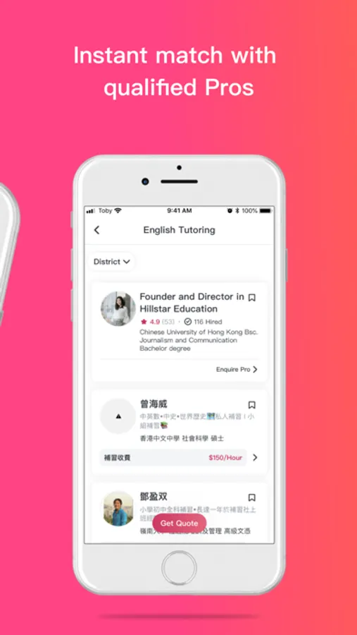 Instant match with Pros, easy to get quotes