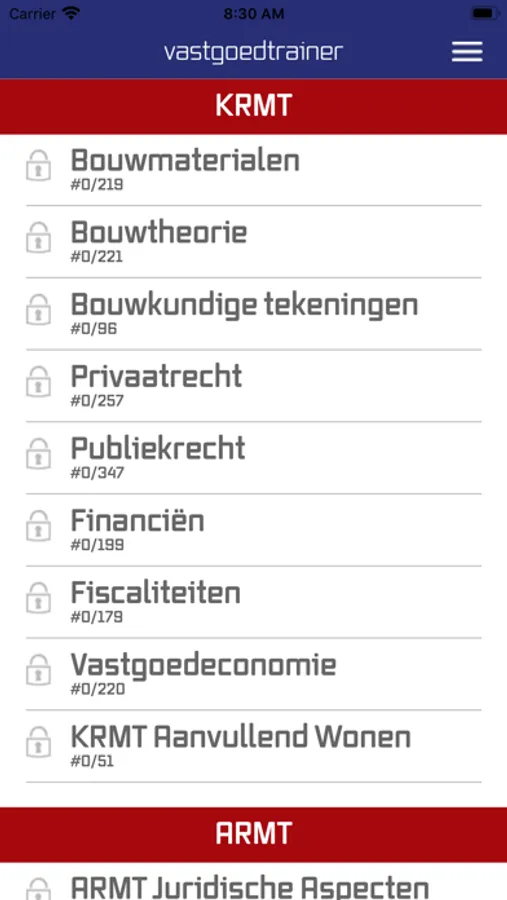 Vastgoedtrainer is een app waarmee u zich kunt voorbereiden op de theorie examens basistheorie voor het diploma Kandidaat Register Makelaar Taxateur Wonen (KRMT) van SVMNIVO. Aan de hand van meerkeuzevragen worden onderwerpen uit de examens getoetst.