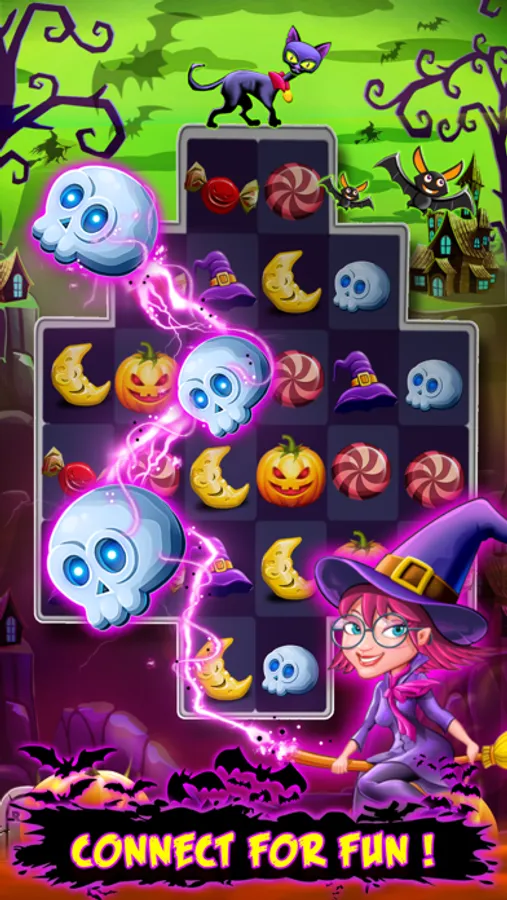 Become a master wizard by collecting magical powers to complete the levels rapidly with magic match. Halloween Witch Connect is completely free to play and in-app purchases to get extra powers and moves.