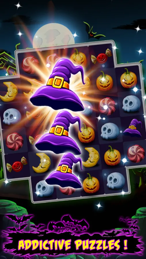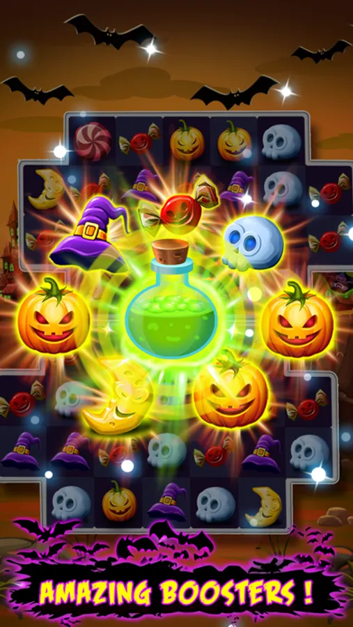 While Halloween 2016 is on its way, play and experience the new world of fun-filled match 3 puzzle game. Collect Pumpkins, witch hats, Pots, Red candies, Half-moons by connecting with three or more same matching accessories. Discover the magical world by bursting as many items as you can. Score high and earn 3 magical pumpkins at every level to compete with your friends and reach the top of this incredible Halloween candy world.