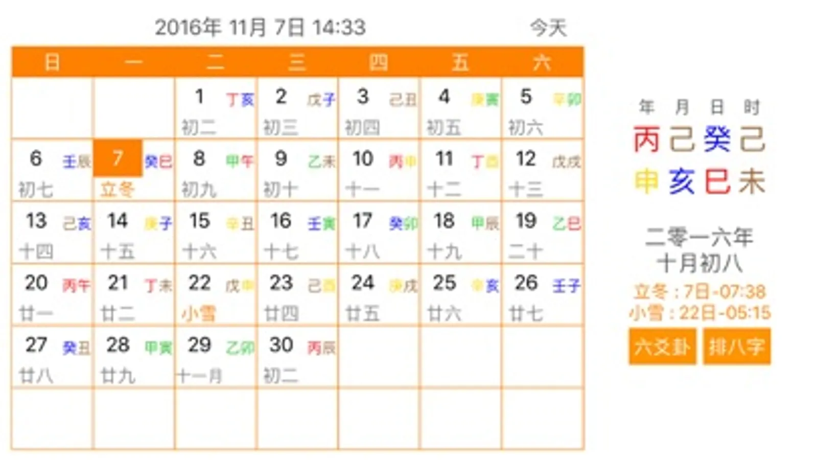 3.提供干支历法显示