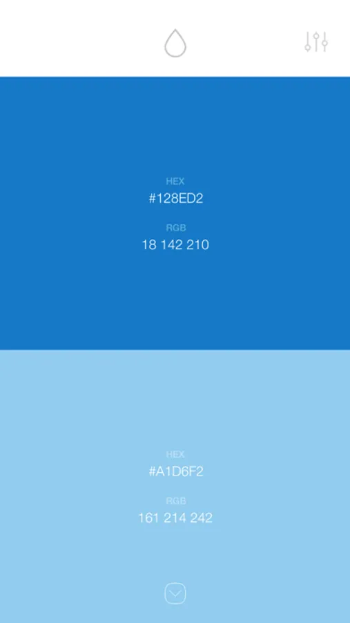 Palette's aim is simple - to give designers and artists a little bit of colour inspiration. Each day a carefully curated colour fills the screen accompanied by it's corresponding HEX code and RGB values. For further inspiration you can tap the arrow at the bottom to reveal a complimentary secondary colour.