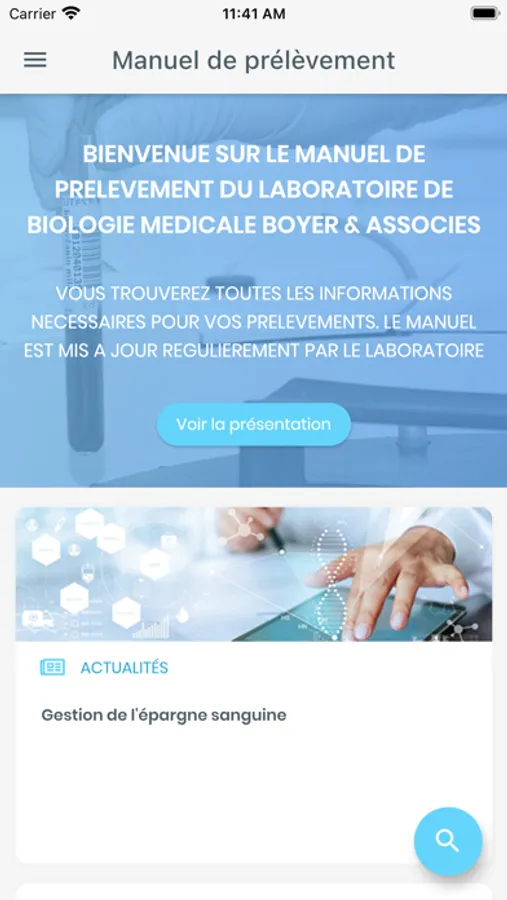 Grâce à cette application, retrouvez l'ensemble du catalogue des examens du laboratoire J.Boyer & Associés.