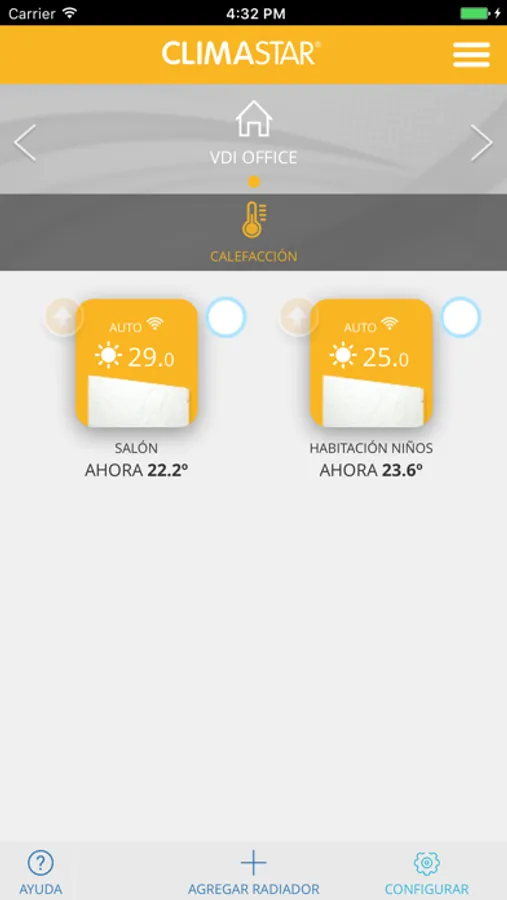 Aplicación para el control de la gama de radiadores Climastar Avant-Wifi.