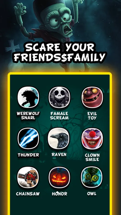 Introducing the all new Halloween Soundbox app! Halloween Soundbox is the ultimate collection of scary sounds where there is a sound for scaring everyone on your list! You can find mummies, zombies, witches, werewolves, ghosts, and Frankenstein all in one place! Use these most terrifying Halloween sounds effects to scare all of your friends!