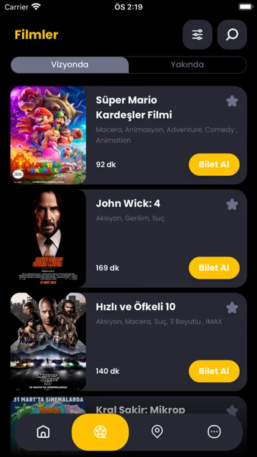 - Vizyondaki filmleri görebilir, koltuk satın alabilirsiniz.