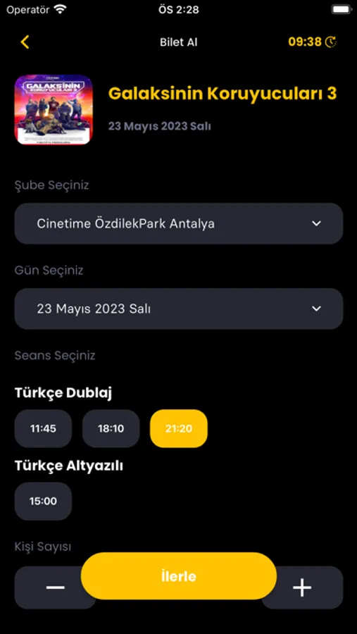 - Seçtiğiniz şehirdeki seansları listeleyebilirsiniz.
