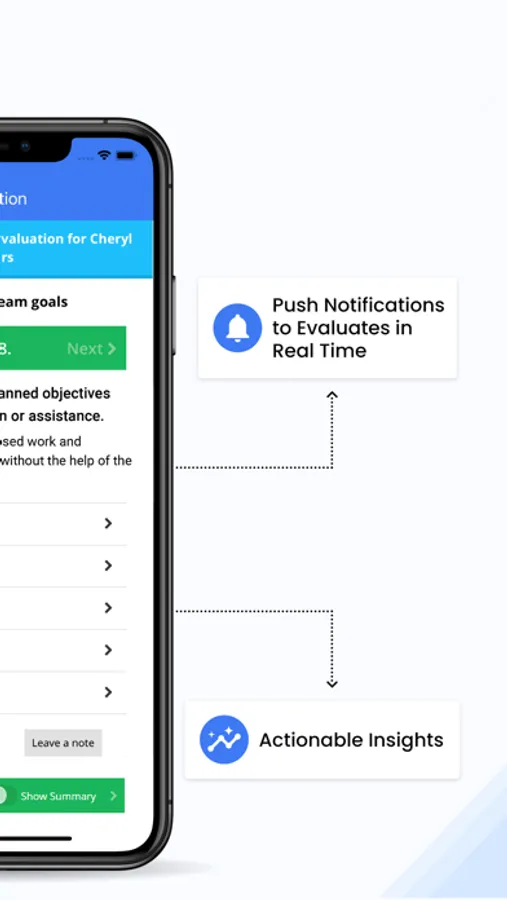 AssessTEAM delivers clear actionable reporting to employees so they can get better at their jobs without waiting for the next appraisal cycle. Evaluations are delivered on the mobile app as a push notification, they can be completed within the app in seconds.